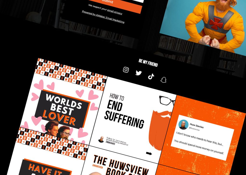 The purpose of Huw Davies’ personal branding and website was to highlight both his engaging personality and his knowledge on gaining financial freedom. The website is jam-packed with entertaining and interesting information, such as videos, social media updates, and pictures. The site has a dynamic and cheerful atmosphere that sets it apart from other coaching websites thanks to its vibrant orange colour scheme.