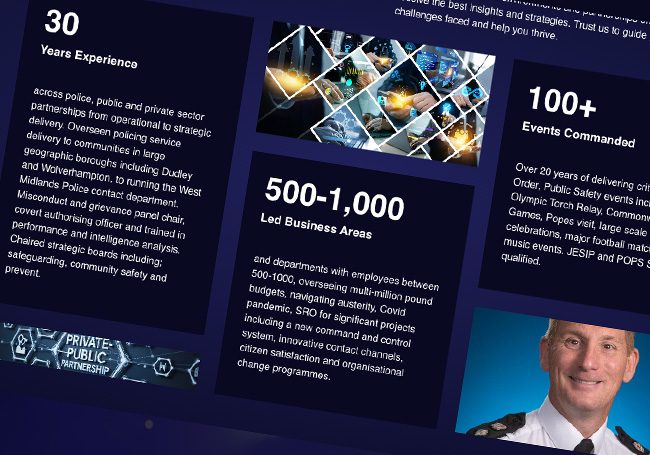For the colour palette, we worked with Richard’s preference for navy, silver, white, and green – colours that maintained some connection to his trusted police background whilst expanding beyond it to represent his broader consultancy services.